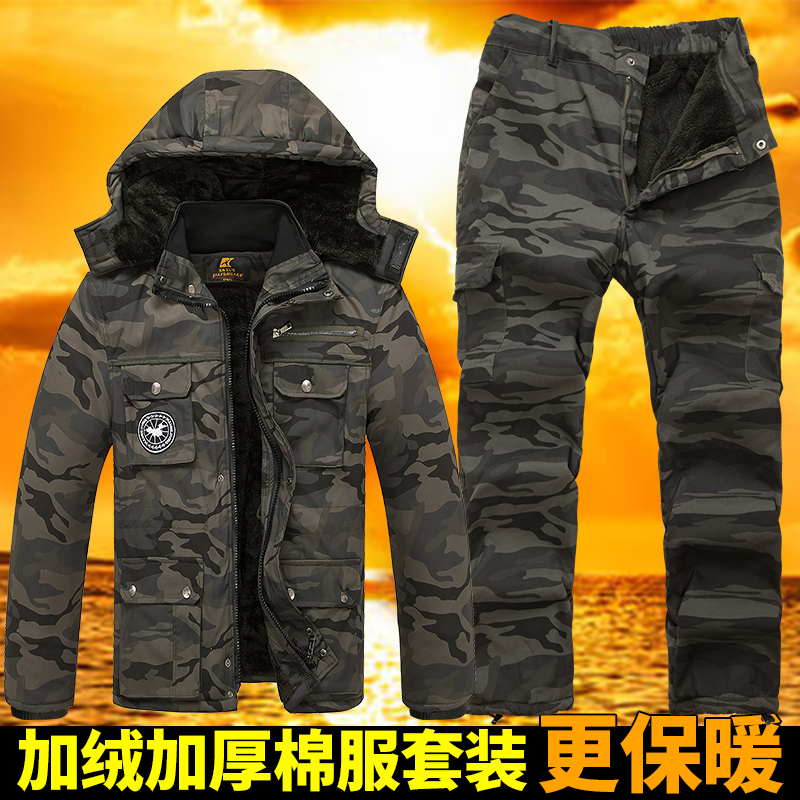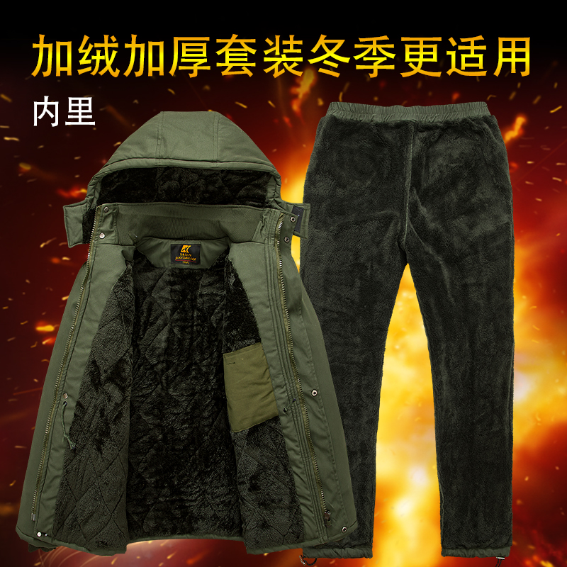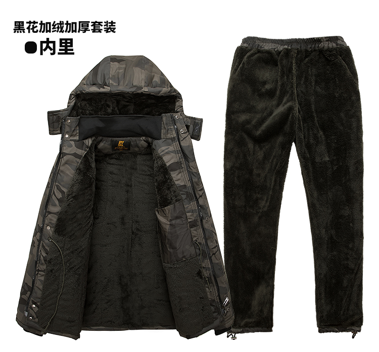 Black flower plus suede thickened cotton clothes (casual style) Army green garnter thickened cotton clothes (casual style) black flower cotton clothes straight with velvety pants suit Army green cotton clothes straight with velvety pants suit Army green plus velvet elastic straight cylinder pants black