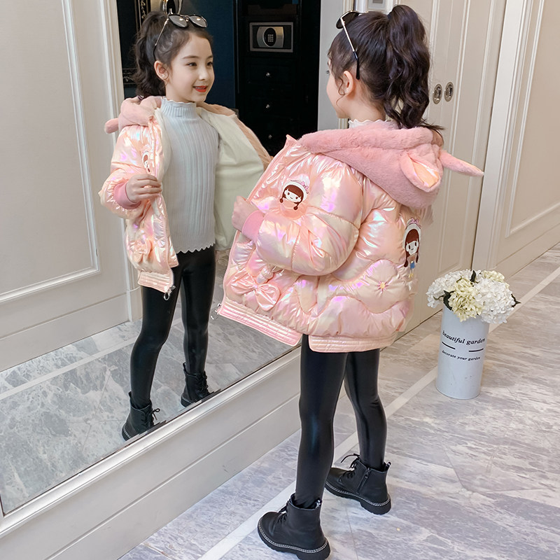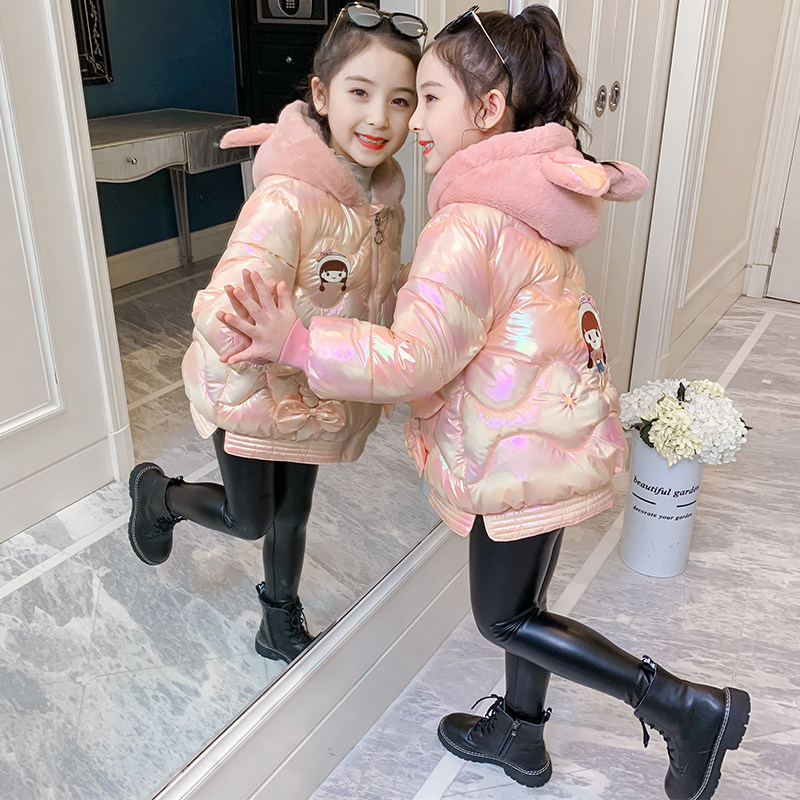 Girl's winter clothing cotton clothes 2021 new Korean version of the Korean version Lantern Show Girl Glint thickened cotton clothes Children's padded jacket