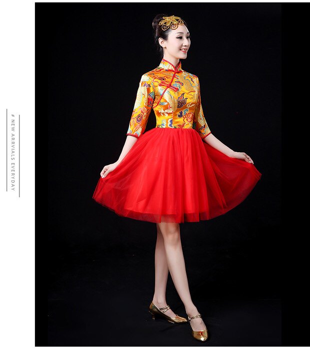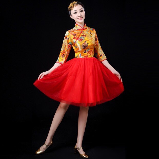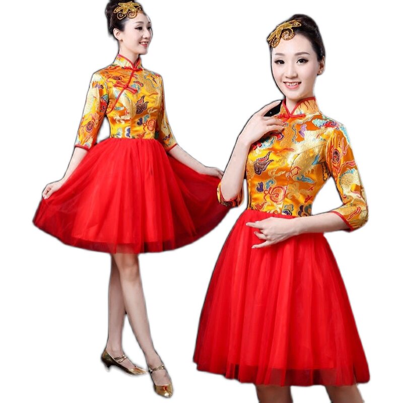 Modern Rice song served with water drum waist drum beating drum suit female adults to perform in the opening dance and fluffy women's skirts in the national wind stage