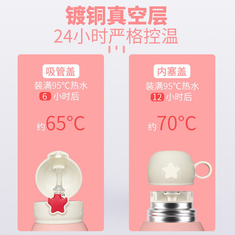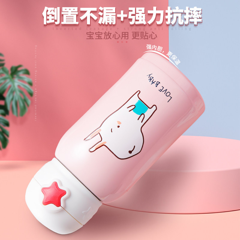 Pink small rabbit 500ML (316L antibacterial liner cup three-cover cup cover) rice white elephant 500ML (316L antibacterial liner a cup of three cover cup cover) pink small