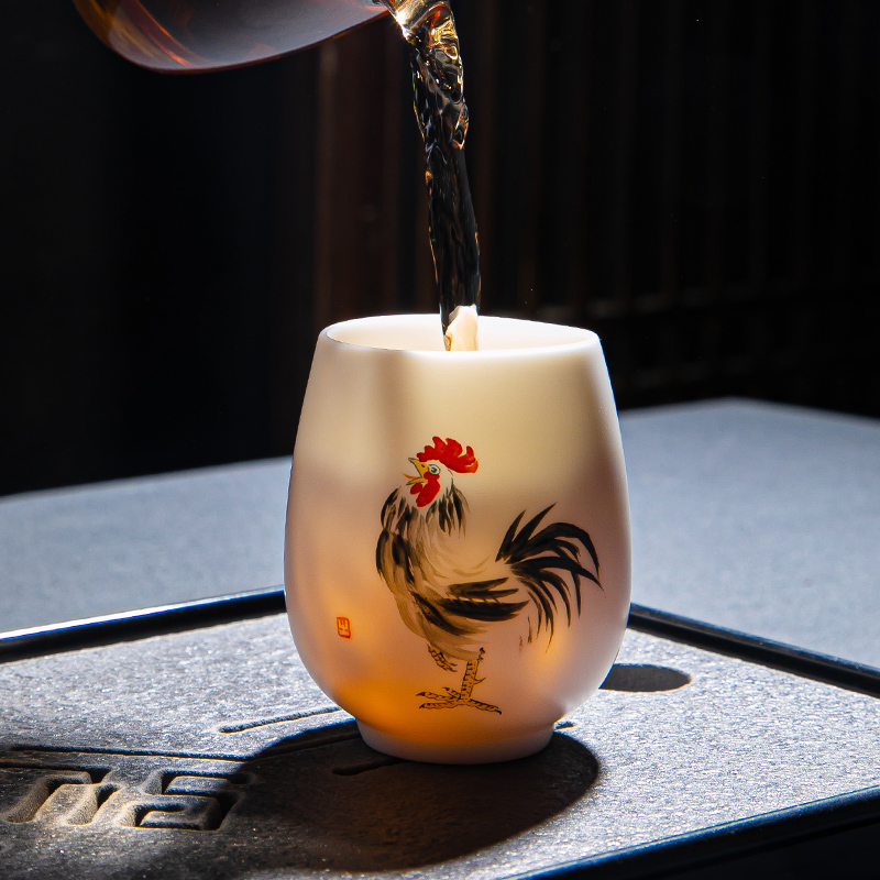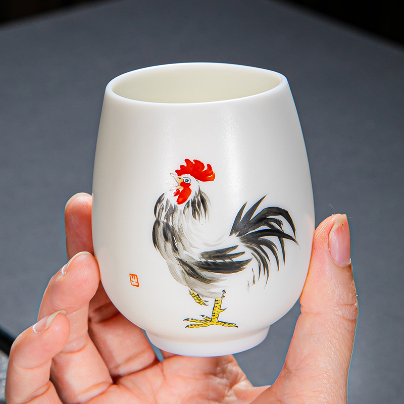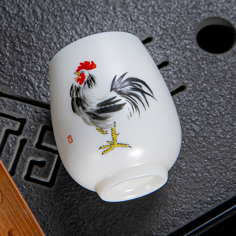 Defied White Porcelain Pure Hand Painted Master's Cup Tasting Cup Single Cup Kongfu Tea Cup Rooster High-end Sheep Fat Jade Porcelain Tea tea