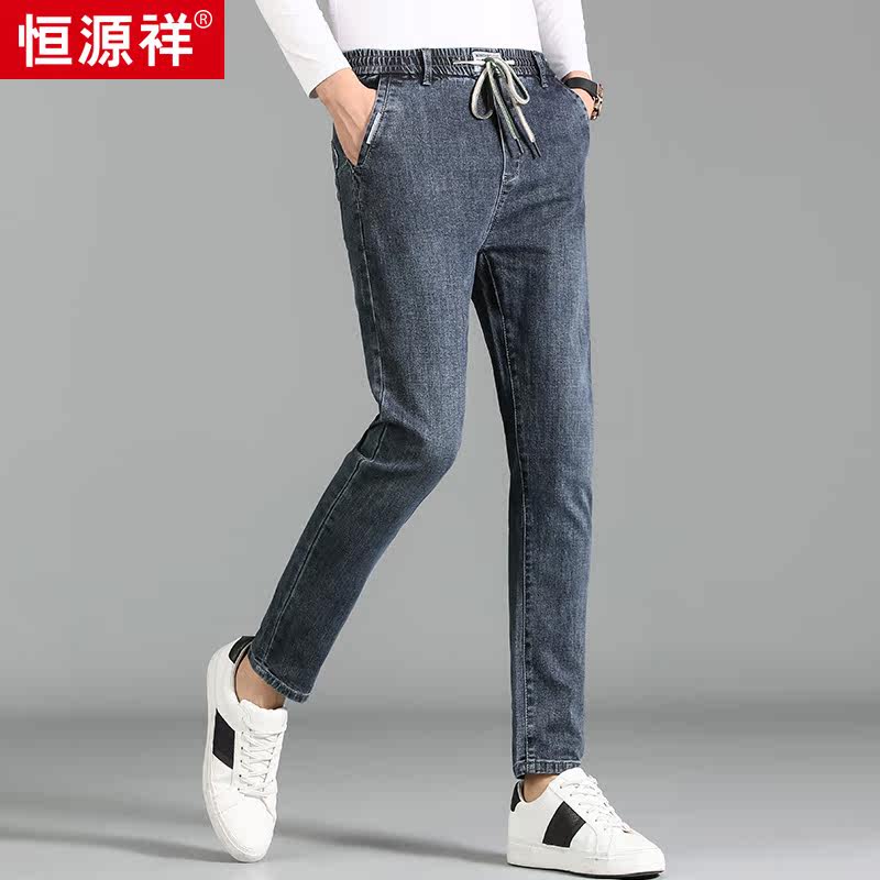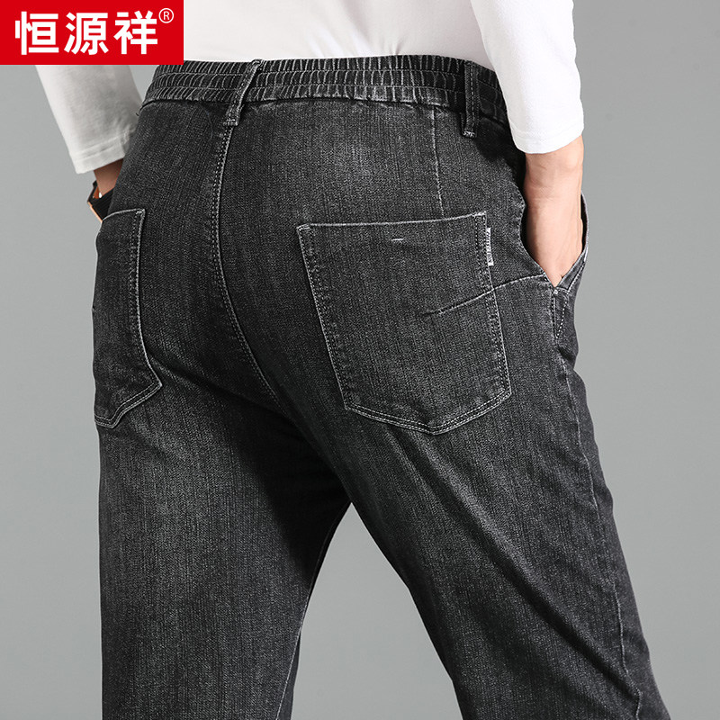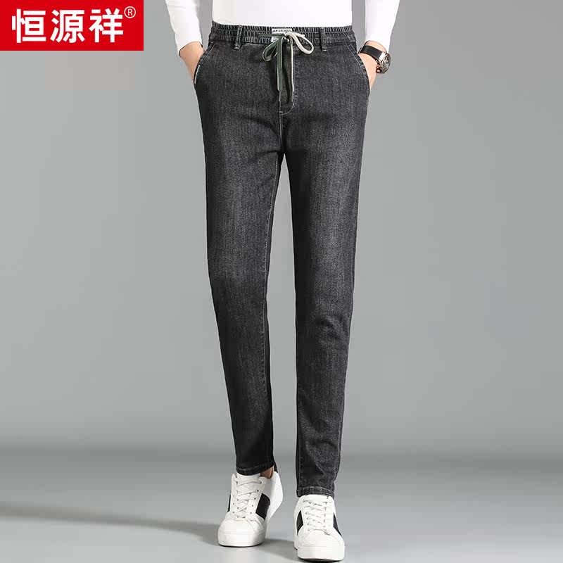 Hengyuanxiang 2020 autumn and winter new middle-aged men's jeans loose small straight elastic waist fashion casual trousers