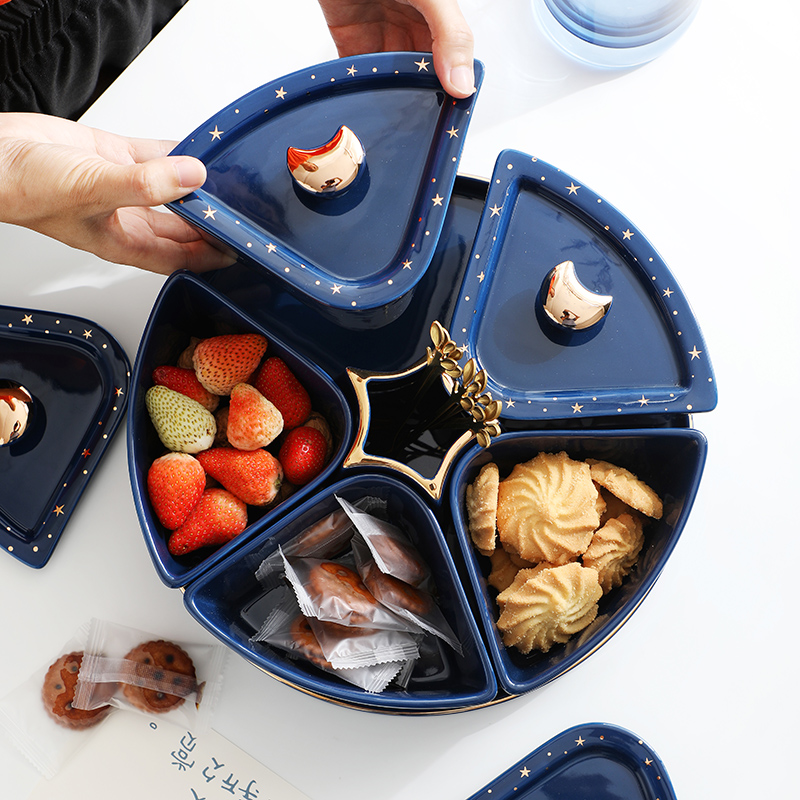 Creative dried fruit plate living room household tea table grid snack candy box with lid modern light luxury storage box fruit plate