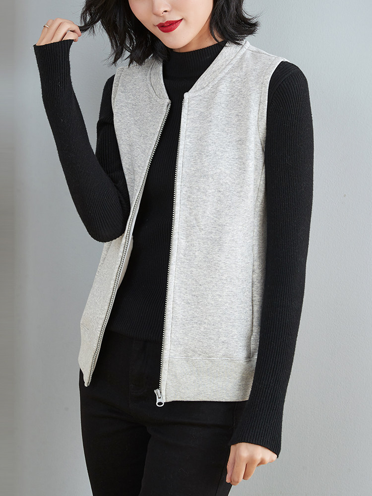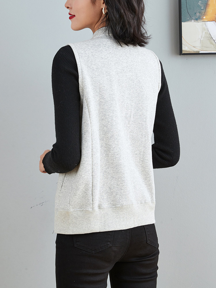 Gush waistcoat women's spring and autumn sports casual sleeveless outside hitch jacket short outside wearing cotton waistcoat bra-laced cardiovert jacket
