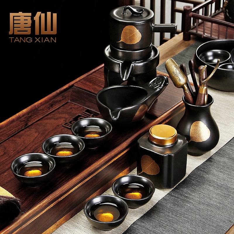 Jizhou Kiln Kung Fu Tea Set Wooden Leaf Automatic Tea Set Office Guest Small Tea Table Stone Grinding Teapot