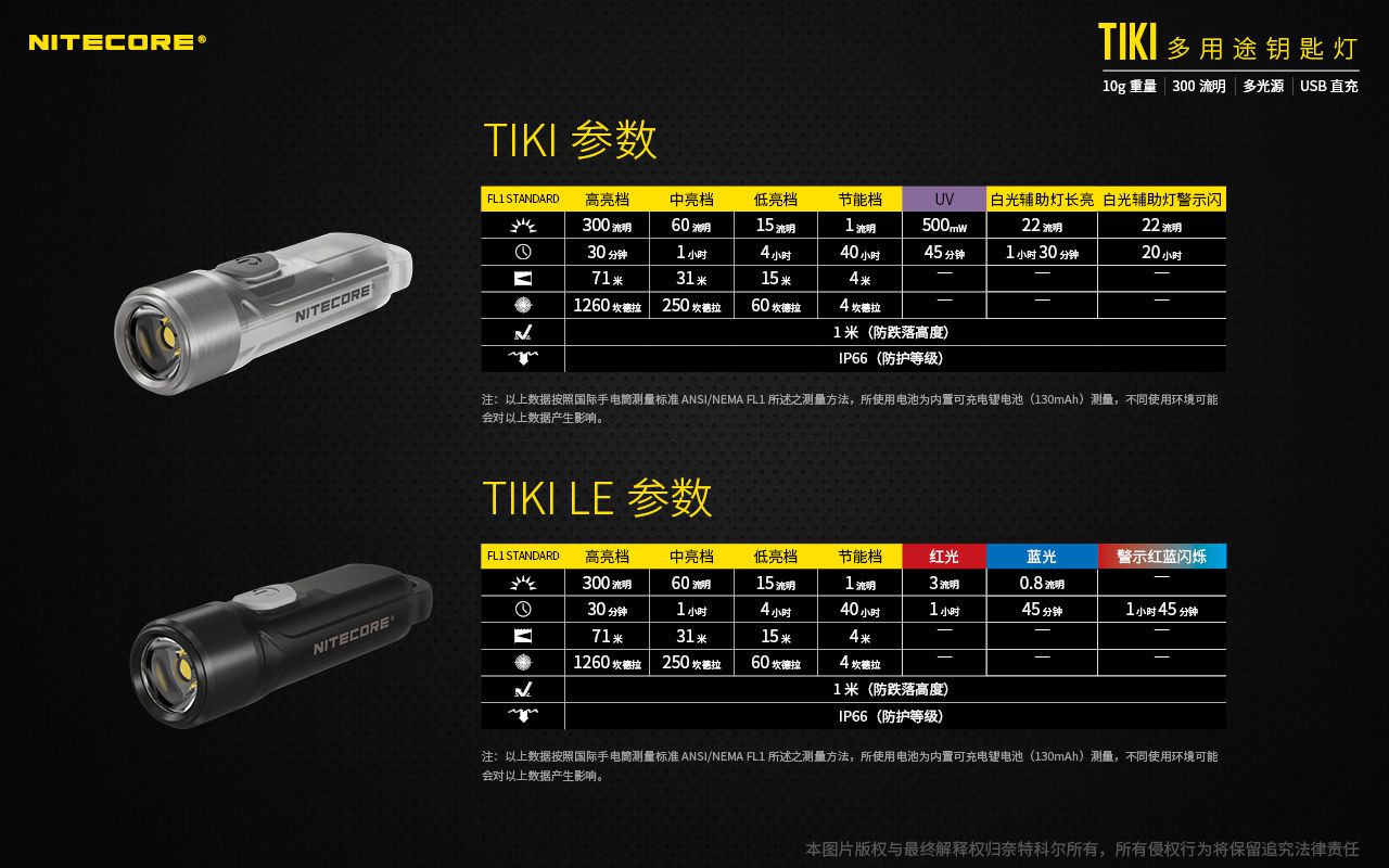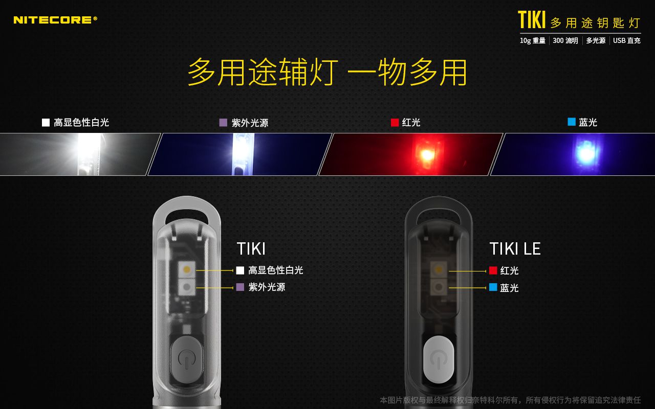 NITECORE TIKI LE KEY BUTTON FLASHLIGHT CHARGE RED BLUE WHITE LIGHT MINI MICRO SIGNAL LAMP UV ULTRAVIOLET