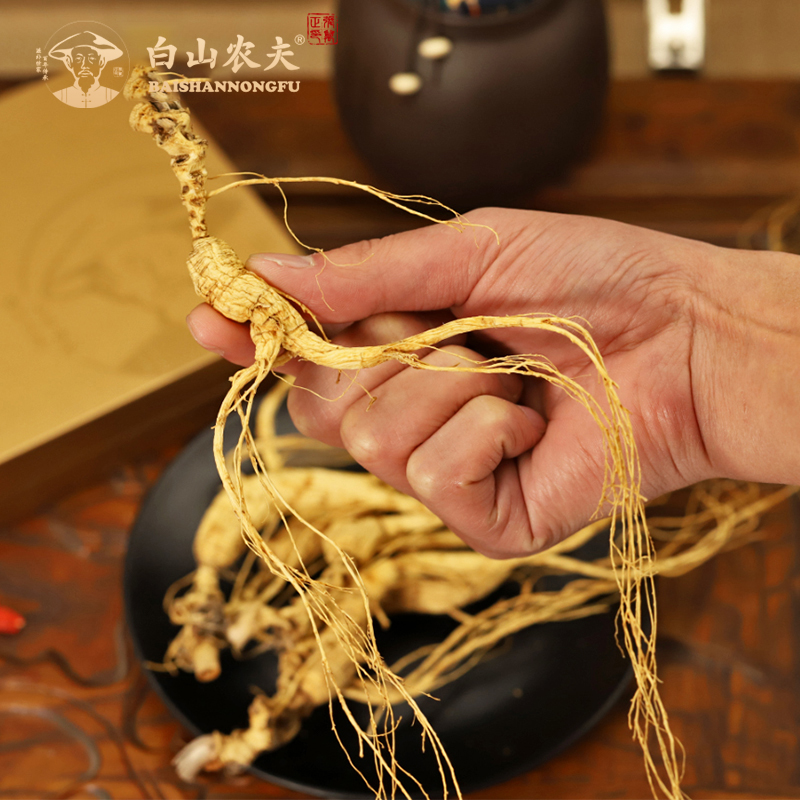 White Mountain Farmer Northeast Changbai Mountain Ginseng Dried Goods Forest Ginseng Whole Branch Old Mountain Ginseng Bubble Wine Three Dried Ginseng Gift Box