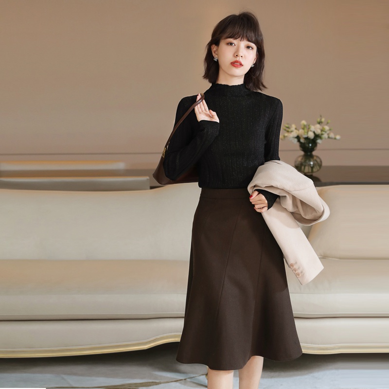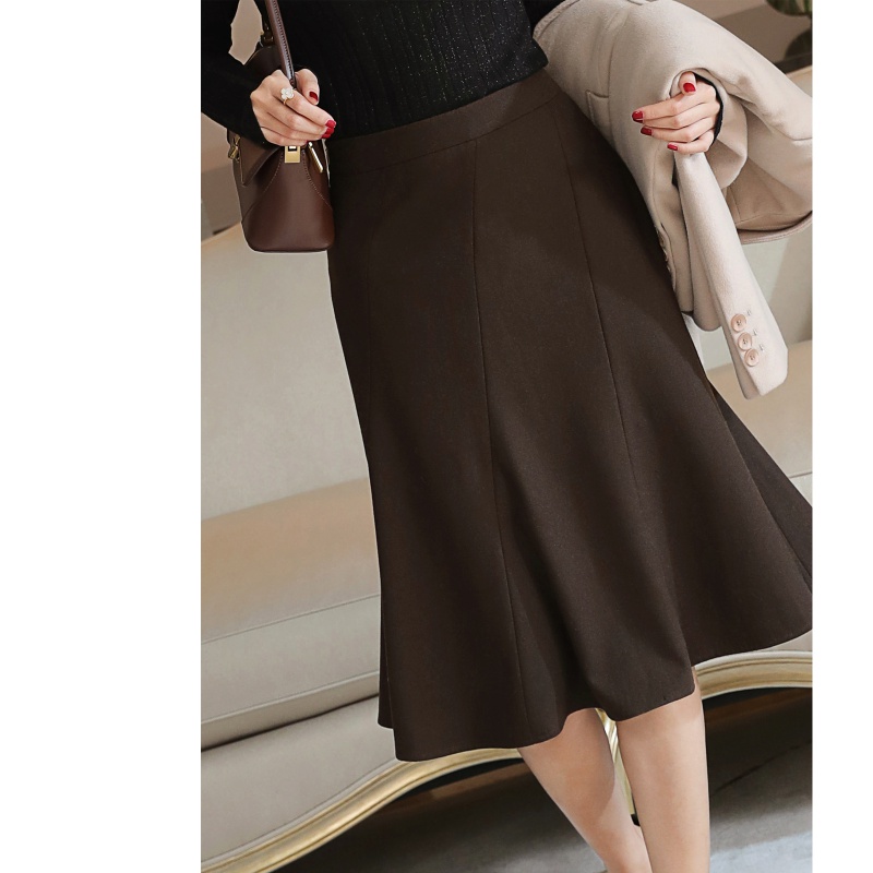 Woolen skirt women's autumn and winter 2020 new wool skirt high waist a-line slim temperament ruffled fishtail skirt