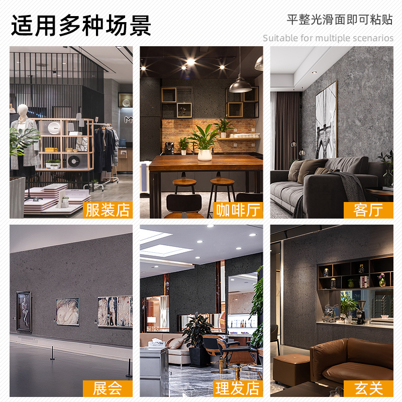 Modern minimalist cement grey wallpaper self-adhesive Nordic style wallpaper living room exhibition online café clothing shop office