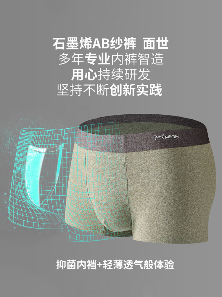 Cat Summer Graphene Antibacterial Men's underwear male pure cotton flat pants breathable quad shorts are large-scale