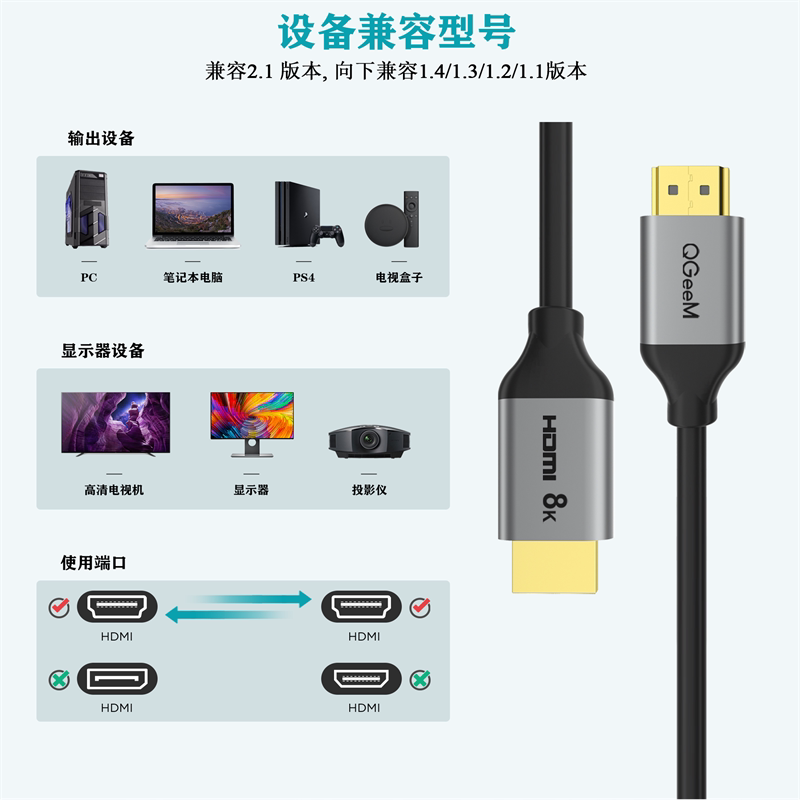 QGEEM hdmi transfer hdmi switching line 8K HD film transfer for computer screen projector ps4