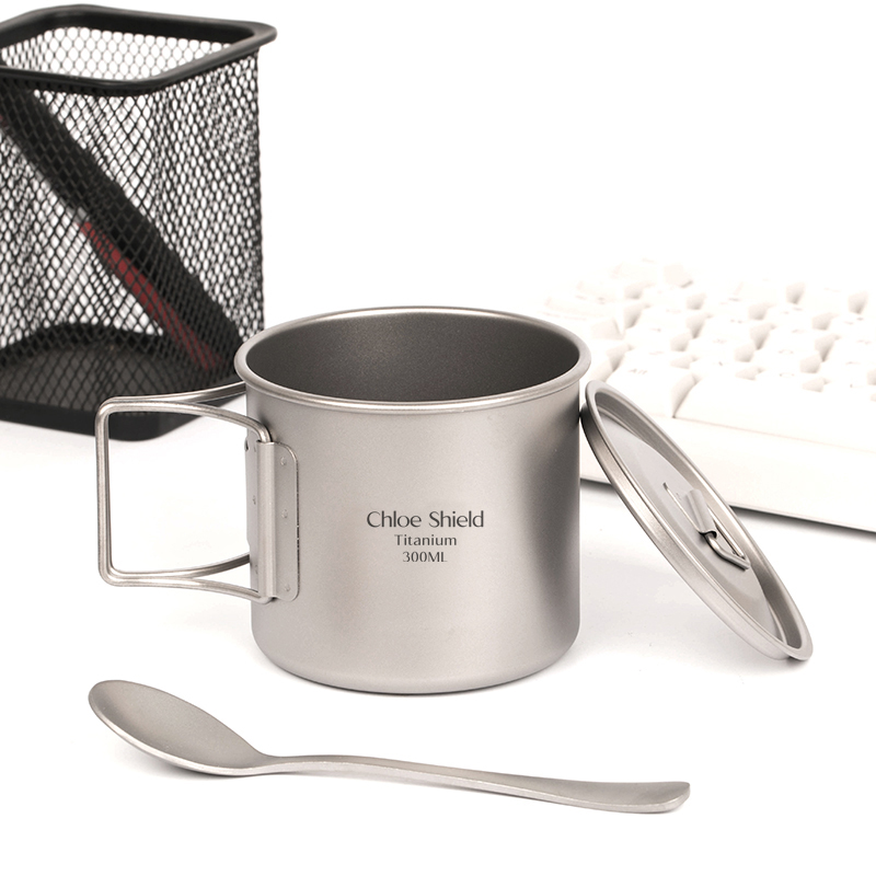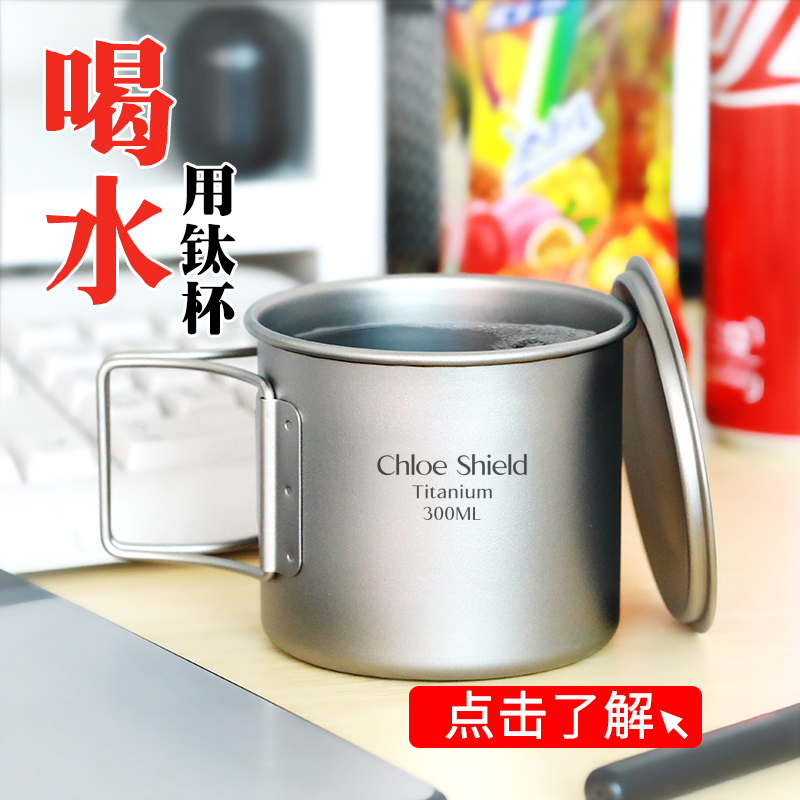 Coe shield outdoor pure titanium cup portable water cup mini coffee cup with handle water tool breakfast metal tea cup 300ml
