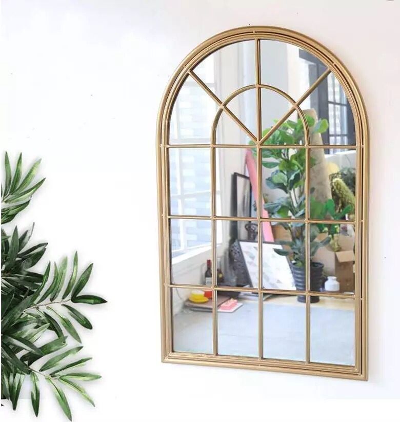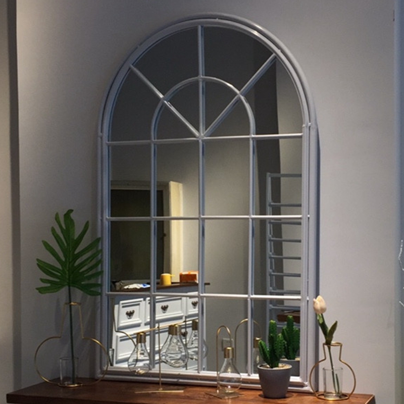 American vintage wrought iron creative hanging wall hanging mirror wall entry mirror round arc false window room living room decorative mirror