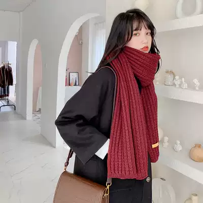 Red Cashmere Scarf Women Winter Cute Girls Korean version of Joker 2020 New Warm Knitted Wool Bib Tide