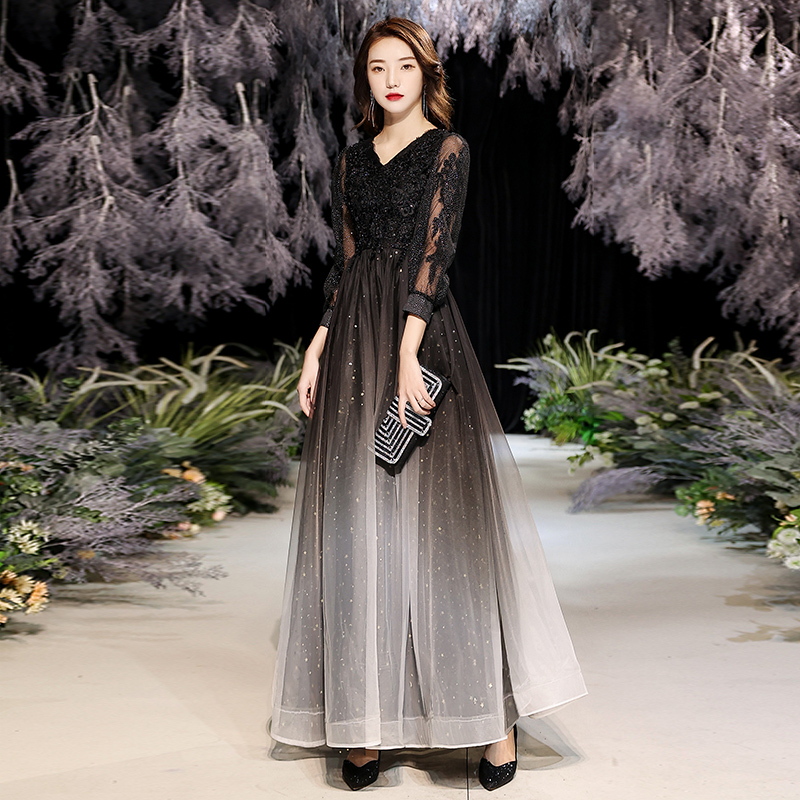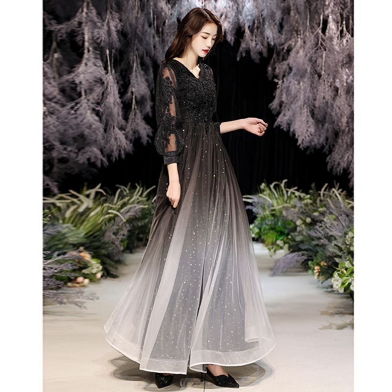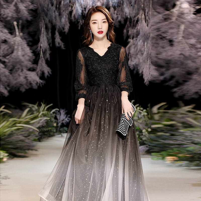 Evening dress skirt women 2021 new banquet black high-end texture long dress host art test high-end light luxury socialite