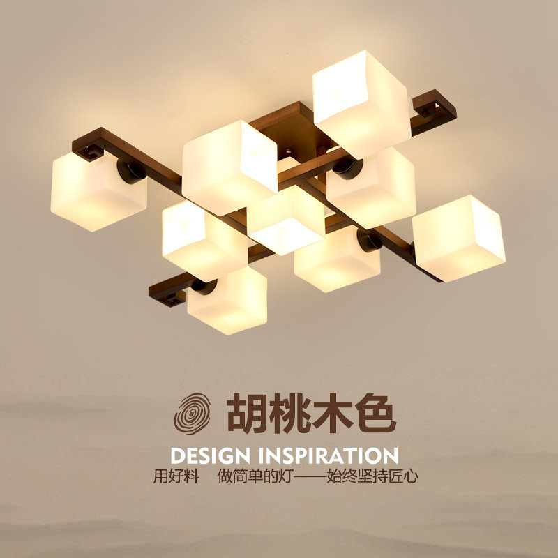 New Chinese suction ceiling lamp retro solid wood living room lamp minimalist for modern home atmosphere walnuts wood color bedroom room lamp
