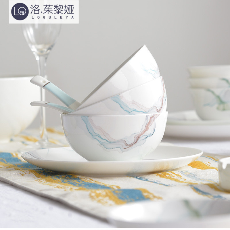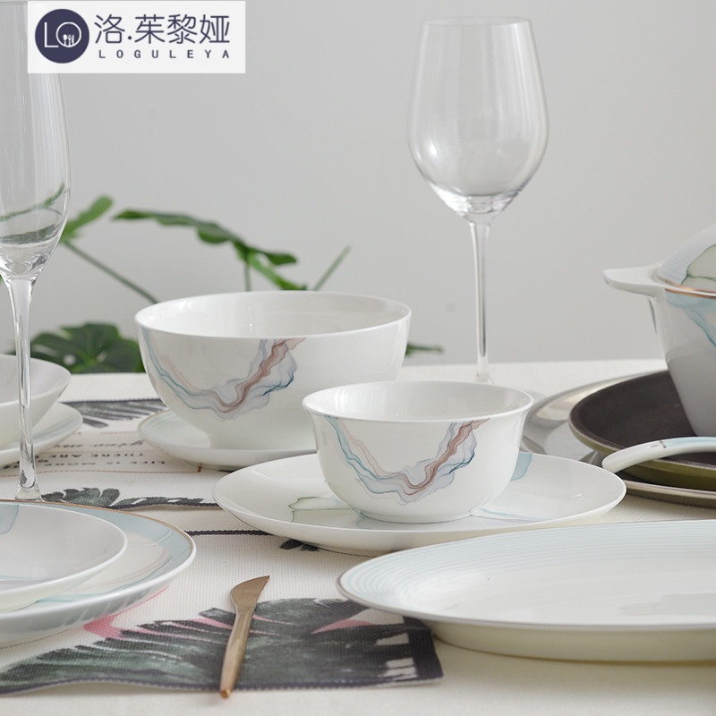 LO GULEYA Bone China Dinner Bowl Single Household Porcelain Tableware Noodle Bowl Creative Big Bowl Soup Bowl Nordic Dishes