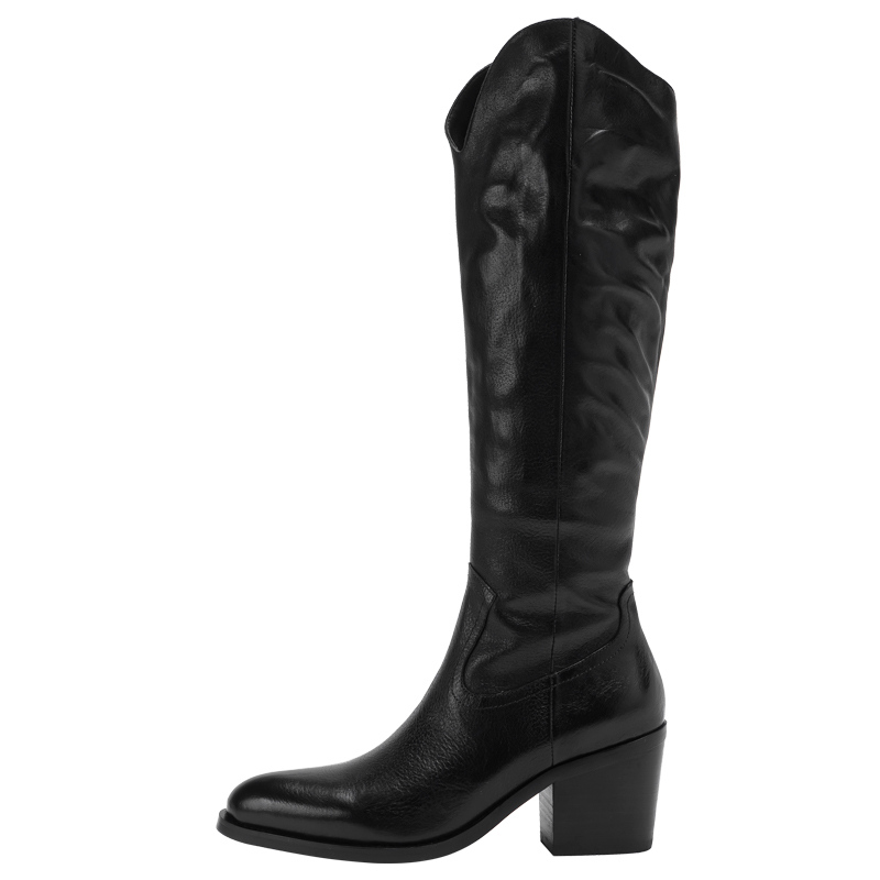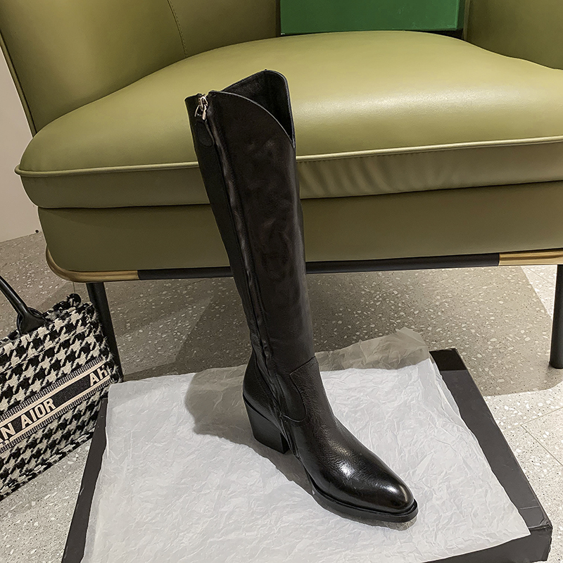 Coarse leg MM large cylinder surrounded by knee-high cylinder long boot tip in thick heel display slim riding boots genuine leather western cowboy boots