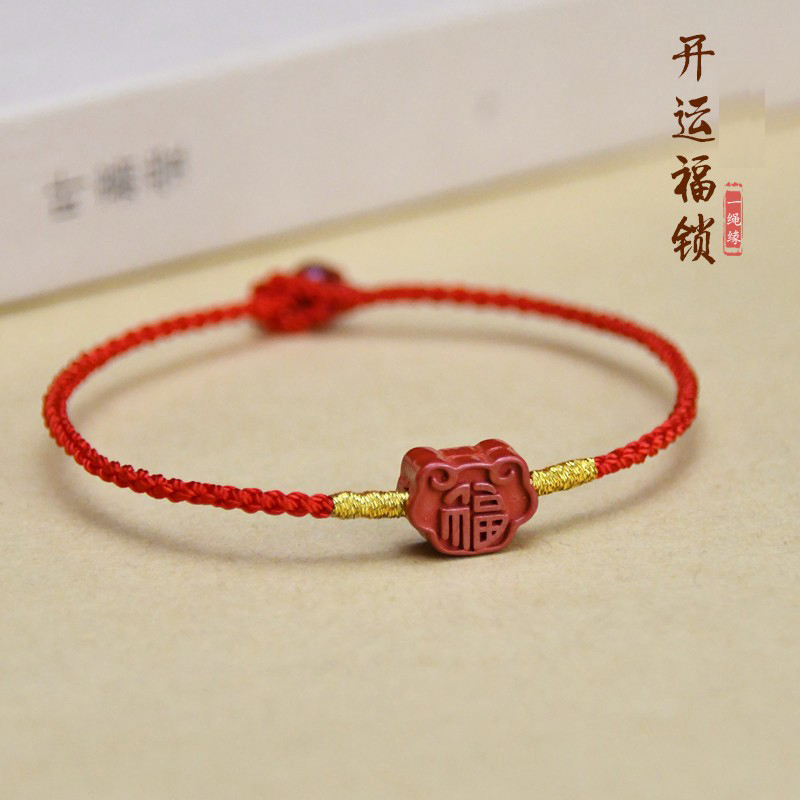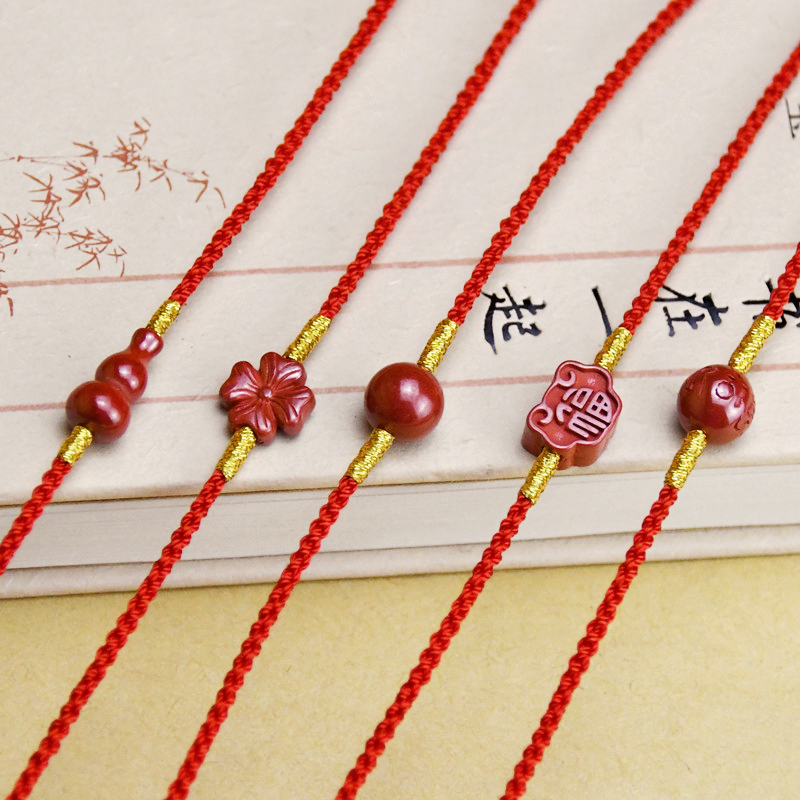 Natural cinnabar red rope bracelet imperial sand luck lock hand rope gourd female luck and safety anklet men's couples