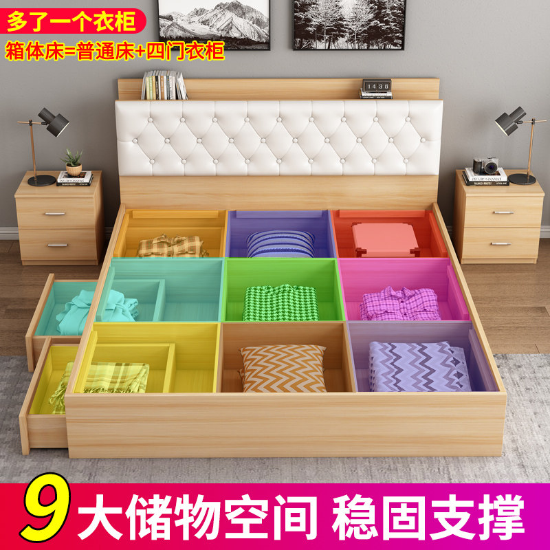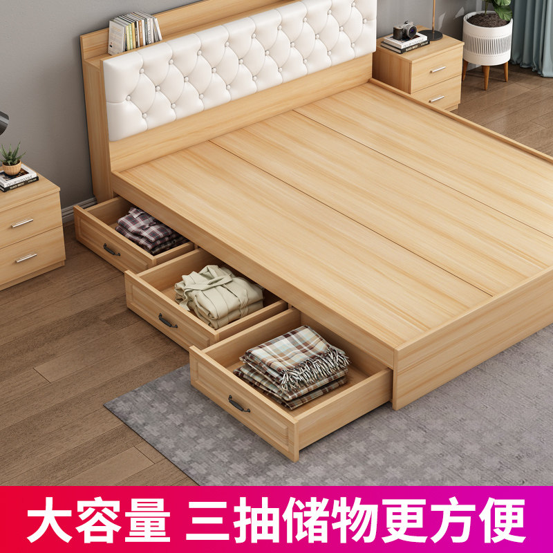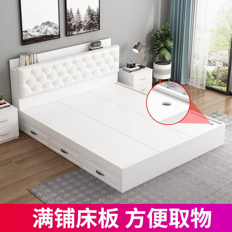 Bed modern minimalist tatami bed plank bed double bed 1 8 floor bed solid wood storage bed 1 5 meters multifunctional