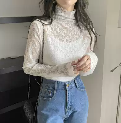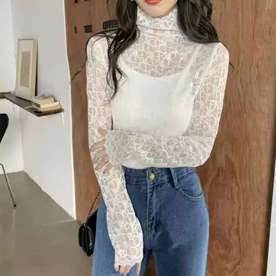 Lace base shirt female mesh hollow autumn and winter clothes New temperament fashion foreign style high collar interior long sleeve top