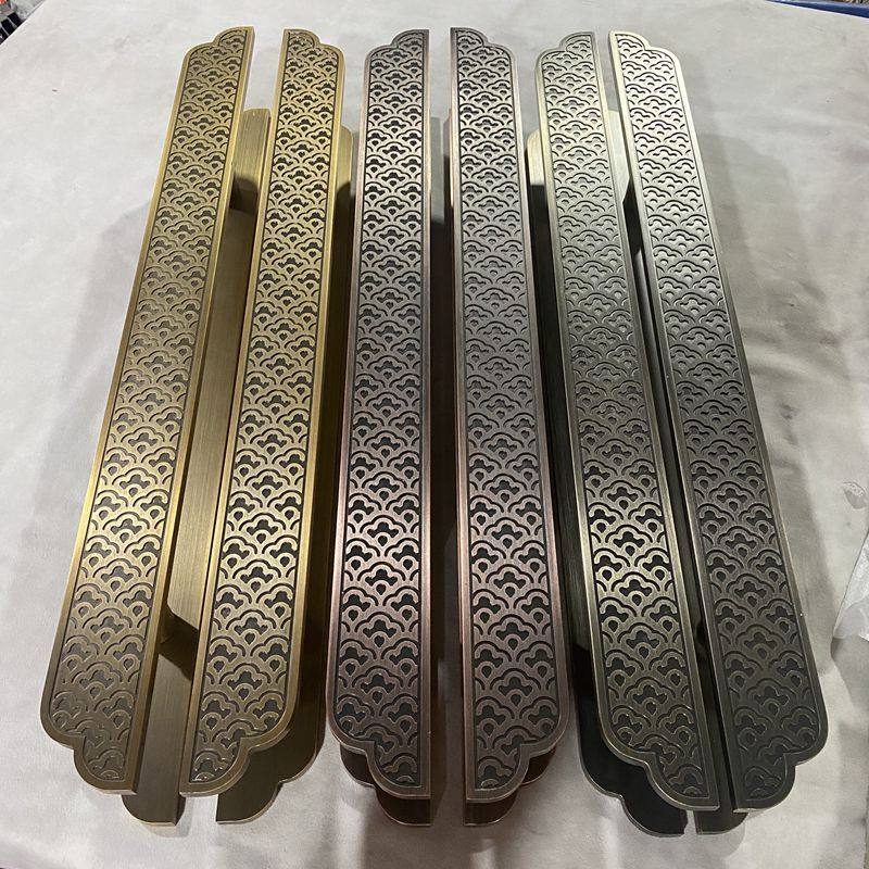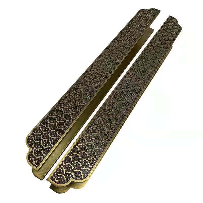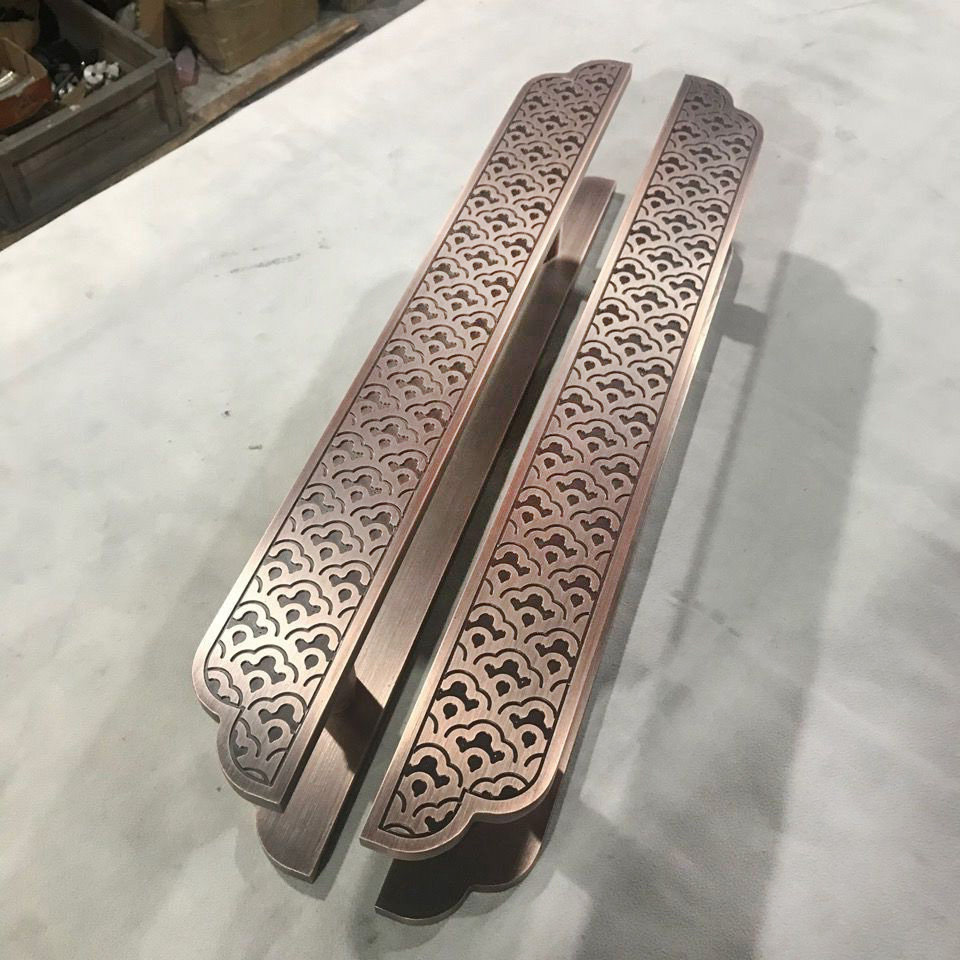 Custom glass door handle wooden door handle Chinese style antique copper large handrail with frameless door handle solid wood door