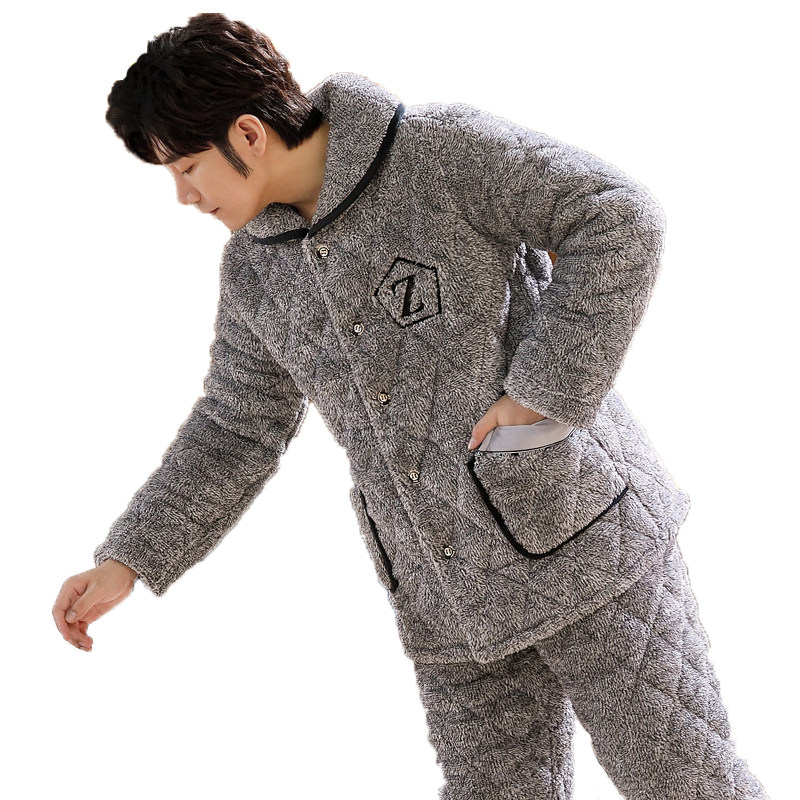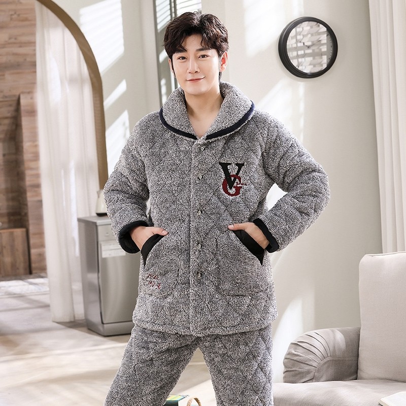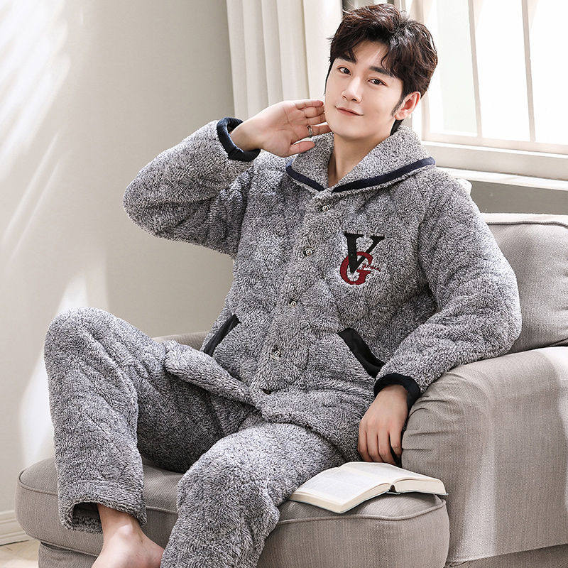 Pyjamas Men's autumn Winter Coral Suede Juvenile section Three layers clip cotton plus suede thickened high school with long sleeve suit Home Suit Home Clothing