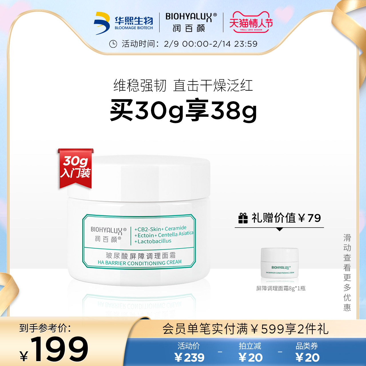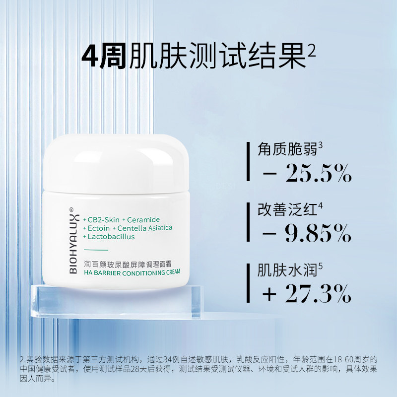Runbaiyan hyaluronic acid barrier conditioning cream Centella asiatica ceramide CB2 large white jar bottle Bloomage bio