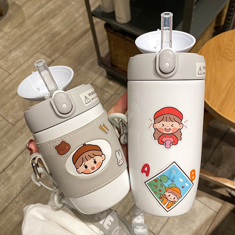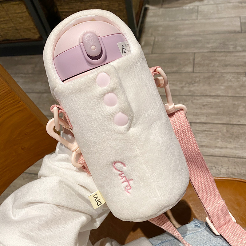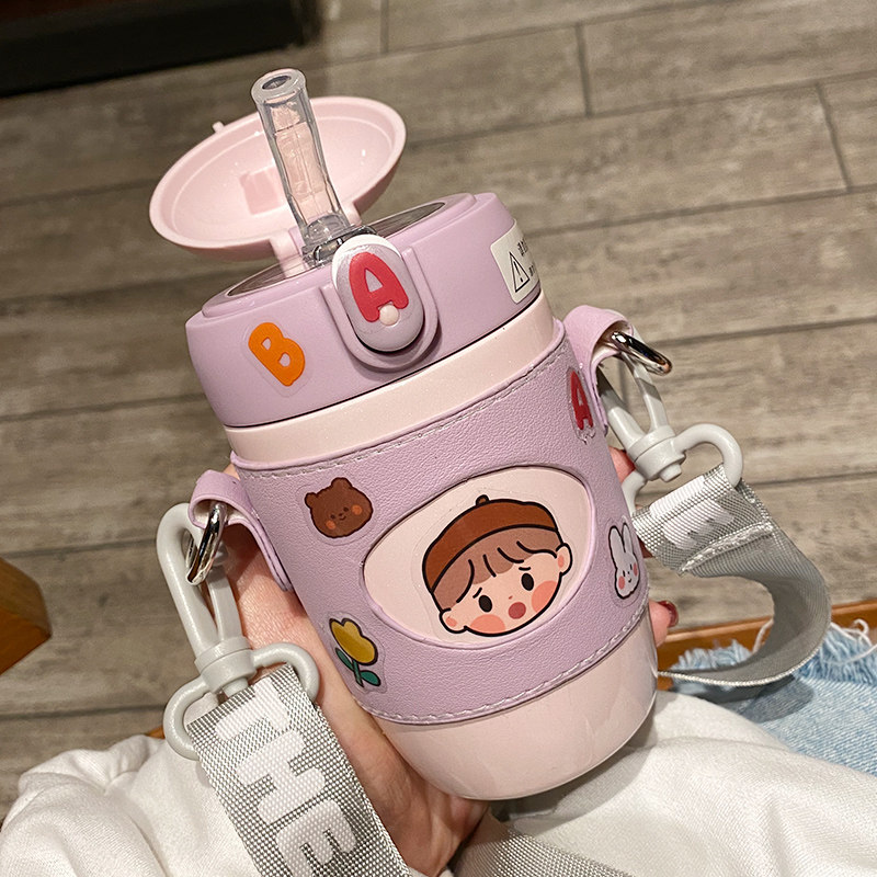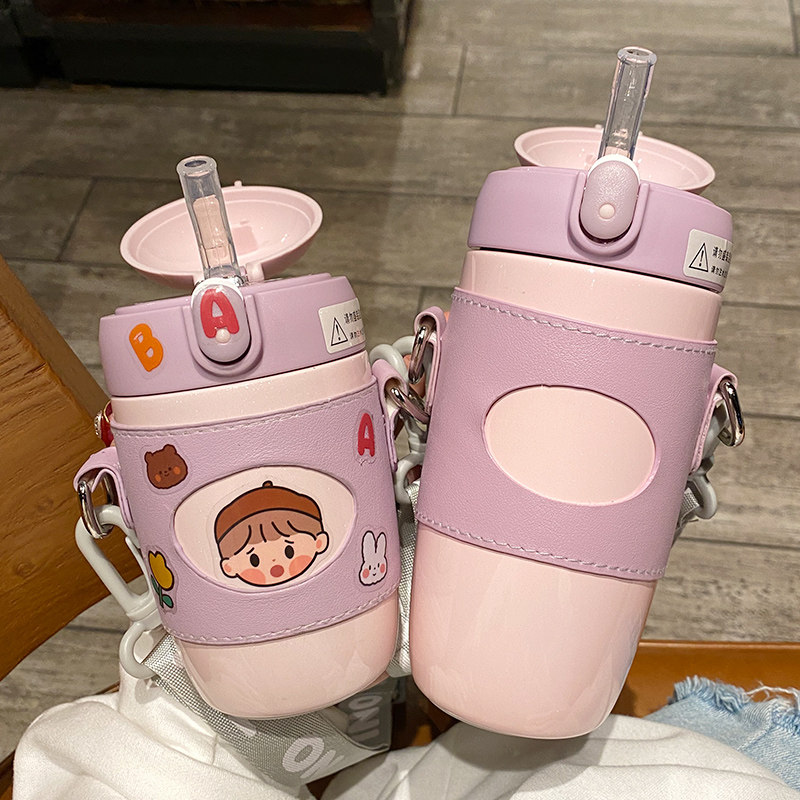 Minimalist straws insulated water glasses Children anti-fall inclined satchel Children's cute portable Kindergarten elementary school children's insulated cup