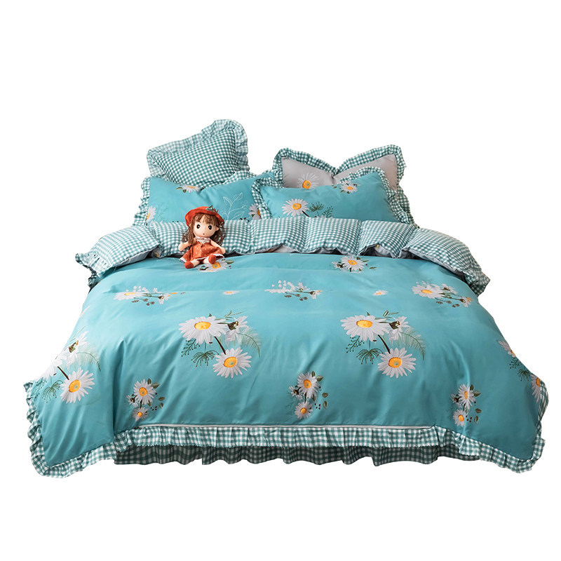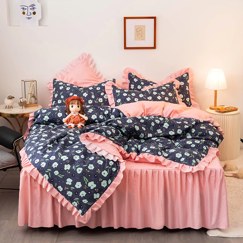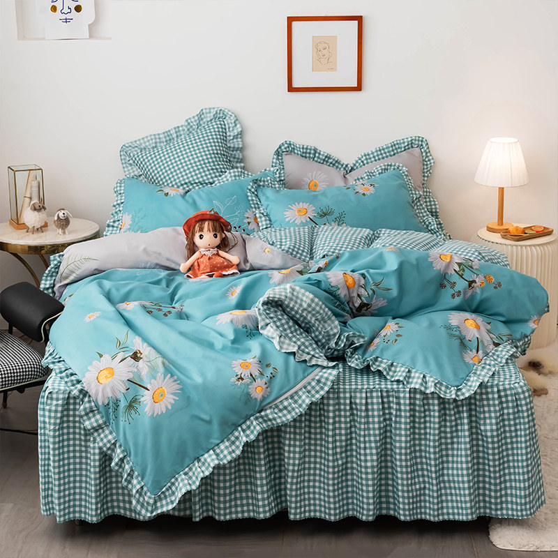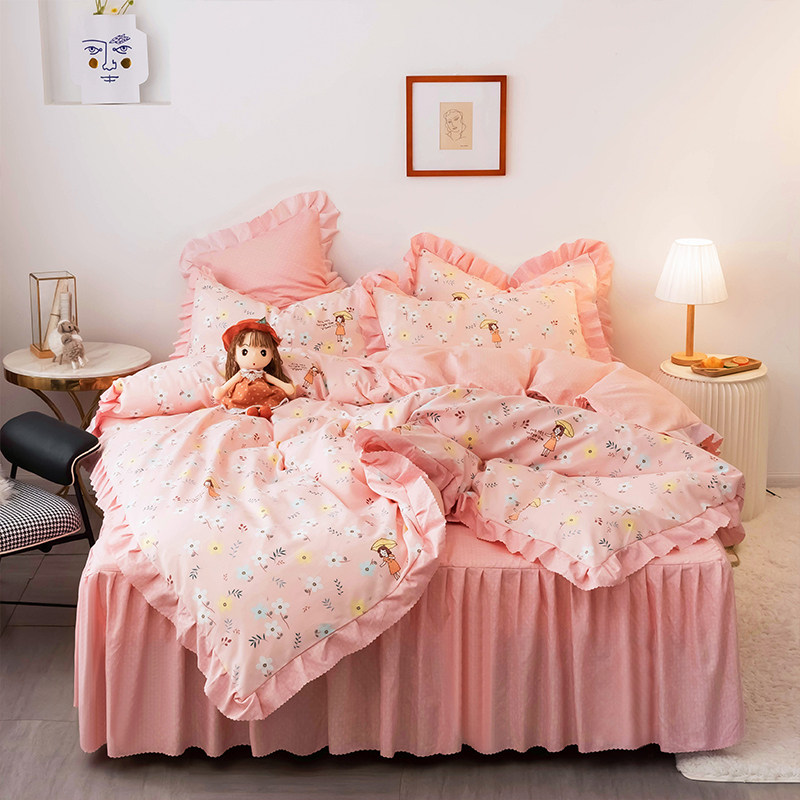 Korean-style bedding cotton bed skirt ins four-piece set girl heart princess style cotton quilt cover bed cover three pieces 4
