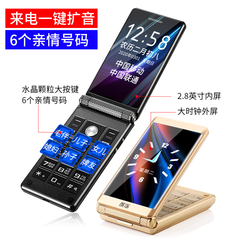 Solove Z6 All Netcom 4G Elderly mobile phone Mobile Unicom Telecom Double 4G ultra-long standby big word LOUD OLD MACHINE DOUBLE CARD DOUBLE TO MALE All Voice King Key Spare Old phone