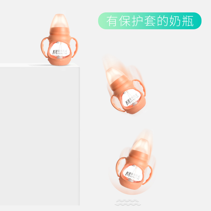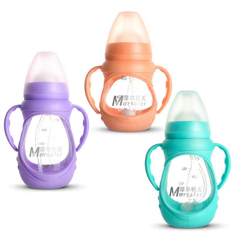 Molsif baby glass bottle-bottle wide calibre with handle straw baby feeding anti-fall silicone gum cover-Taobao