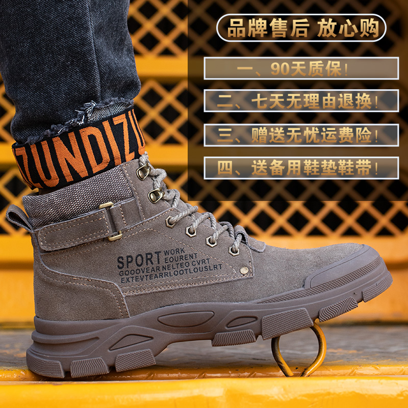 Labor insurance shoes men's anti-smashing and anti-piercing steel Baotou construction site winter high barrel welder work Four Seasons steel plate cotton shoes