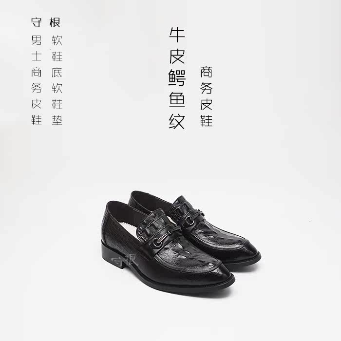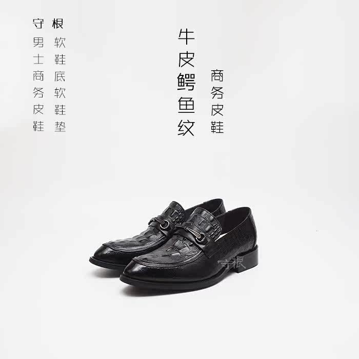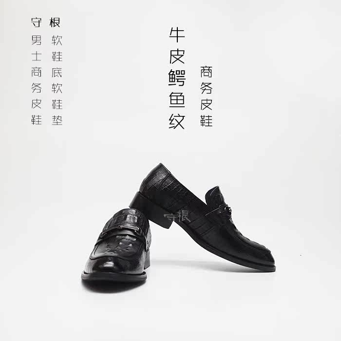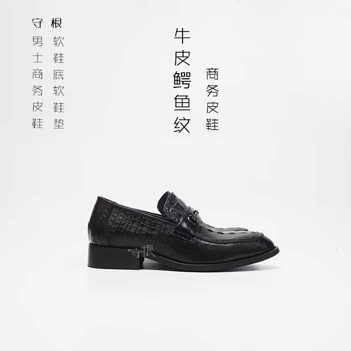 Positive Dress Business Crocodile Tattooed Bull Leather Men's Shoes Black Polished Set Foot One Foot Pedal Soft Bottom Goalkeeper Handmade Shoes