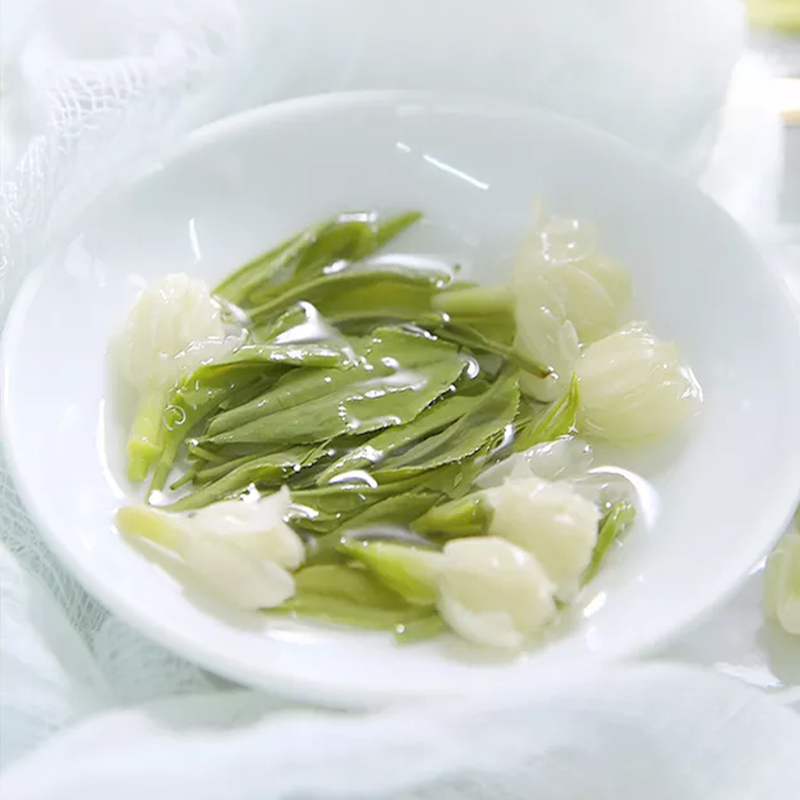 Baked green tea Jasmine flowers White Lana flowers in green tea Jasmine