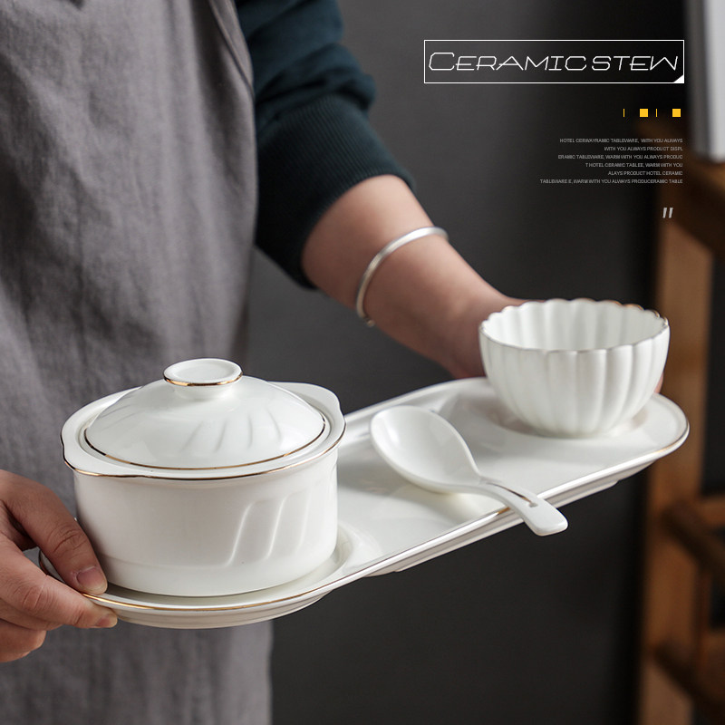 5.7-inch beautiful morning stew cup + long plate + flavorful dish + spoon