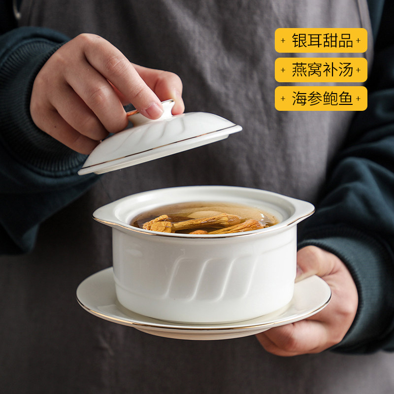 Phnom Penh Palace Bird's Nest Bowl Dessert Bowl Stew Mugs Soup Mugs with Cover Stewed Egg Bowl Double Ear Stew Jars Home Hotel