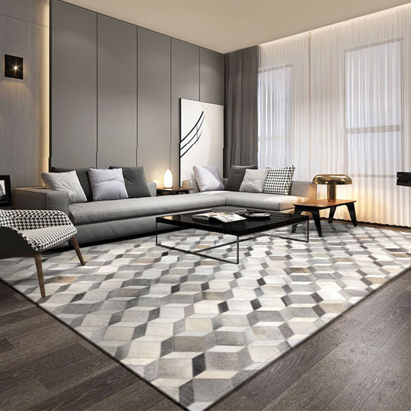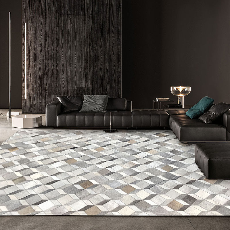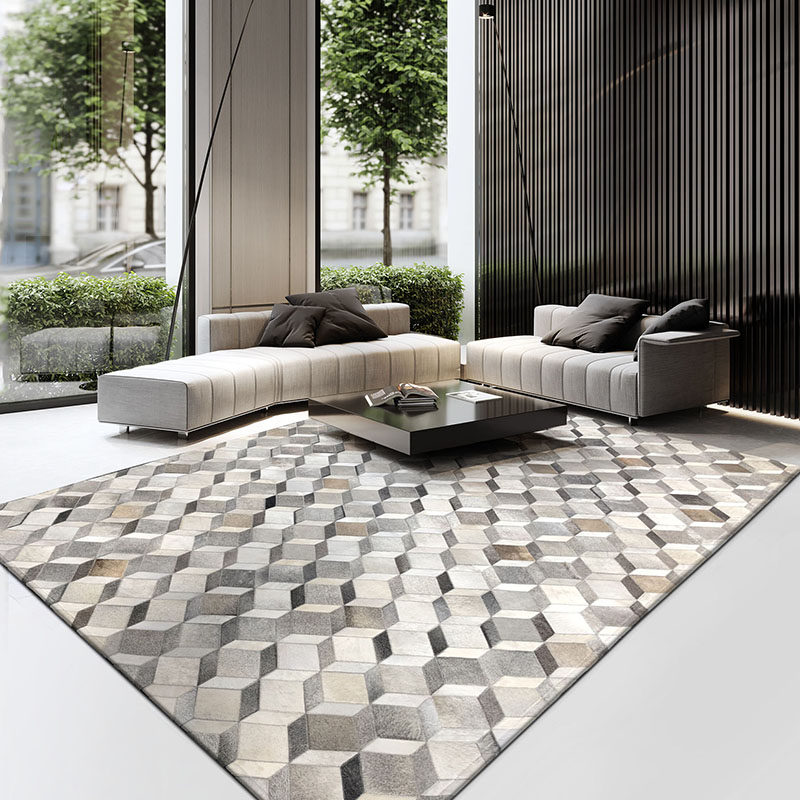 Original cowhide splicing carpet modern light luxury home 3D stereoscopic Nordic living room coffee table mat model room customization