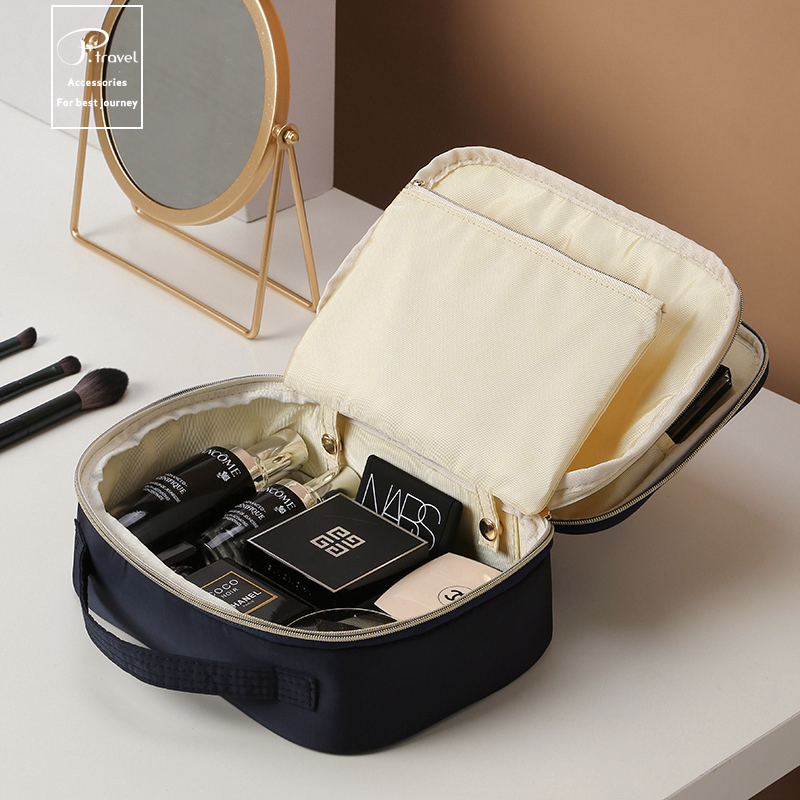 Light luxury navy blue three open door hidden blue makeup wash bag Blue jewelry bag pink jewelry bag Brown jewelry bag bright gray jewelry bag black jewelry bag
