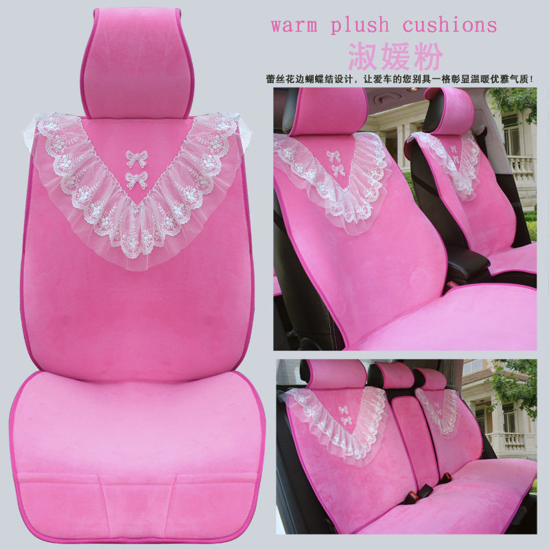 2020 female car cushion winter new cute net red lace plush cushion Korean non-binding non-slip car cushion