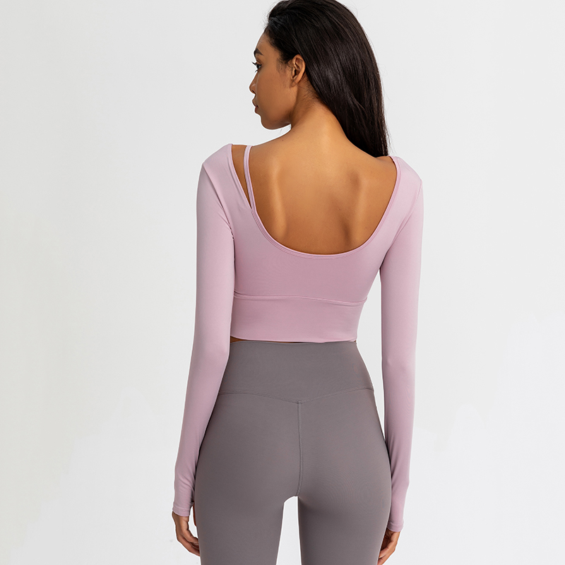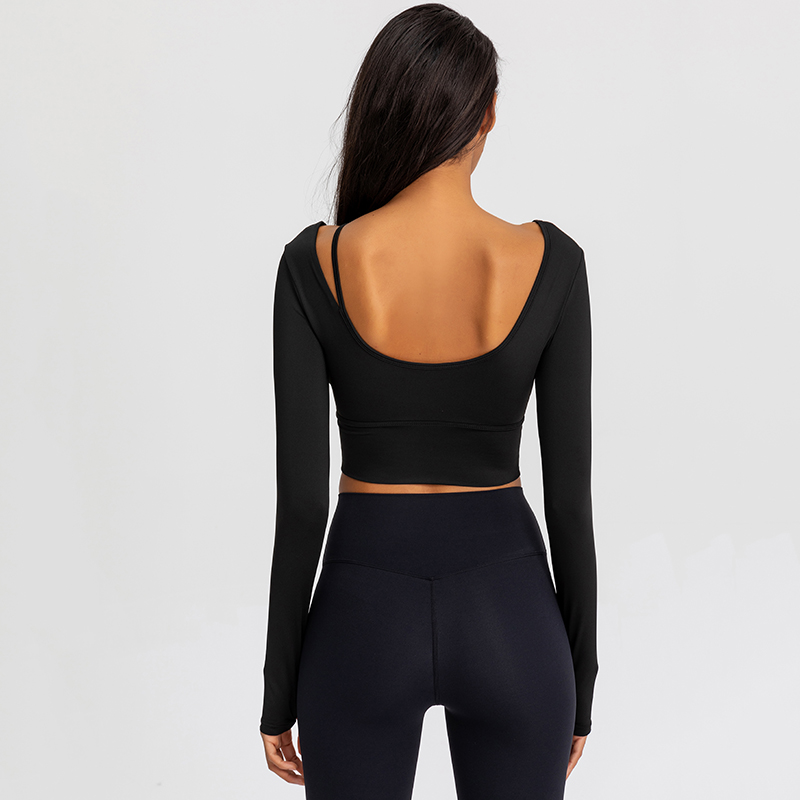 Lulu yoga dress women's spring summer style tight crop with chest pad sports tops quick-drying fitness running long-sleeved T-shirt