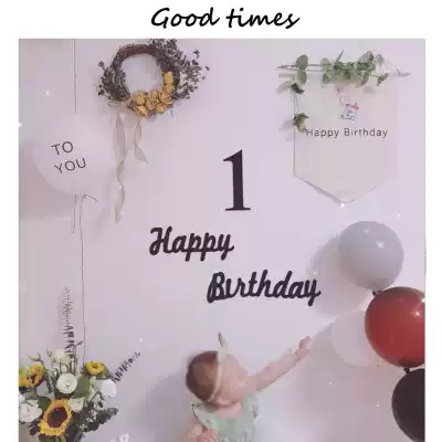 New ~ Simple Mori Black happy brithday Digital Wall Sticker Baby Birthday Scene Decoration