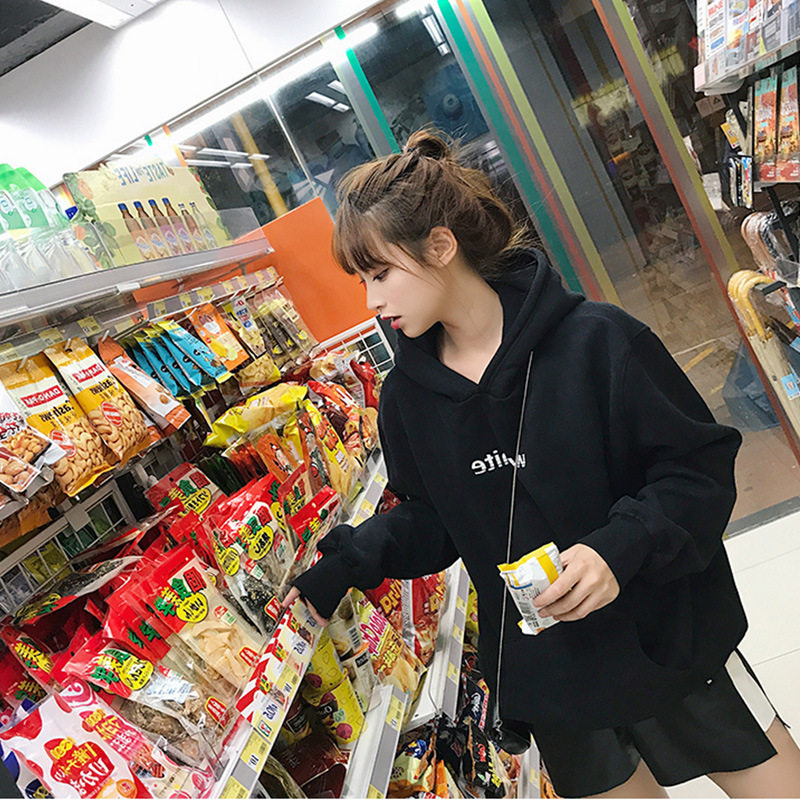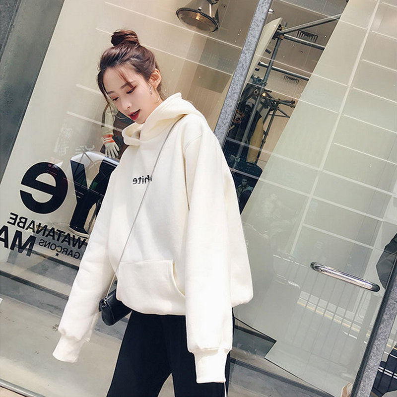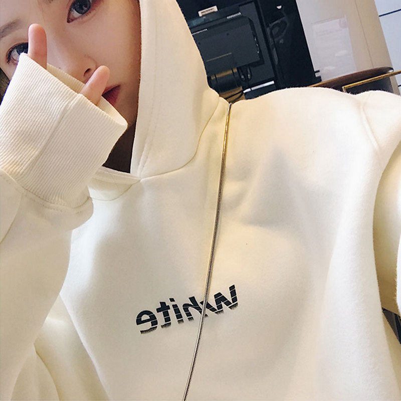 Tide brand white hooded sweatshirt women 2021 autumn and winter New Fashion Korean loose pullover thin bf wind jacket
