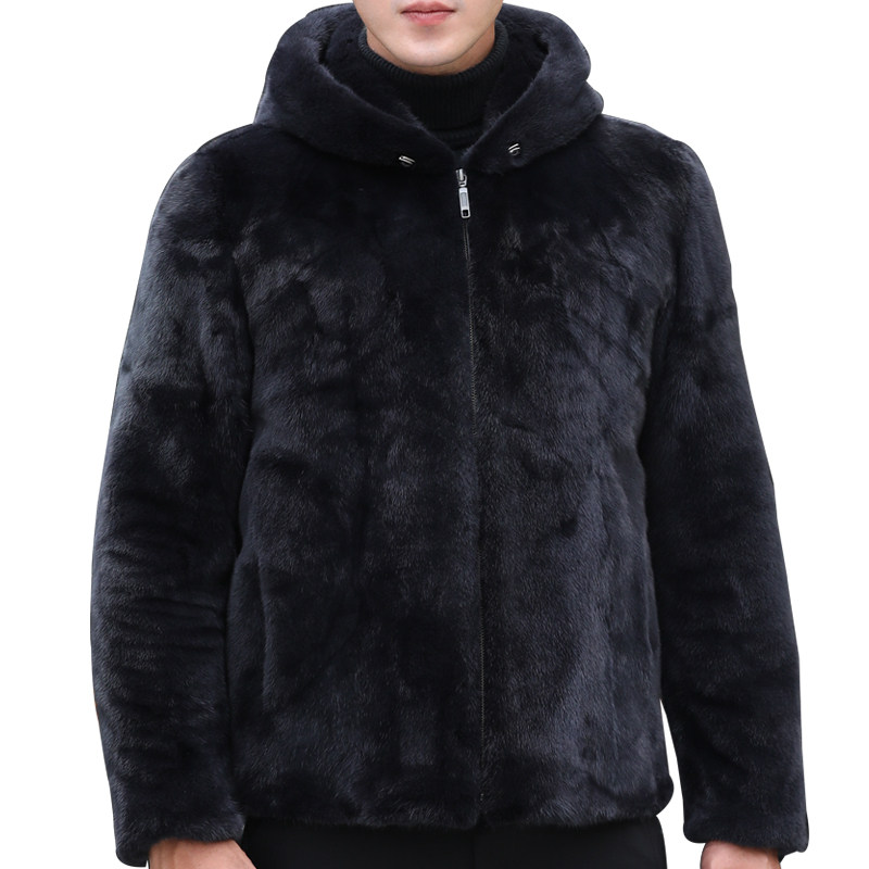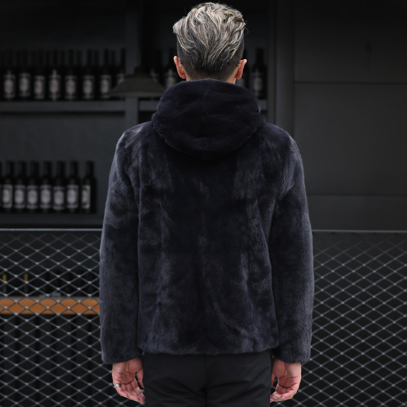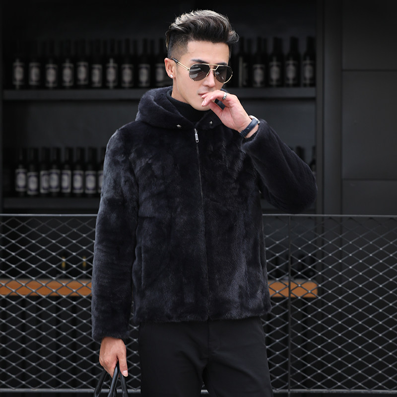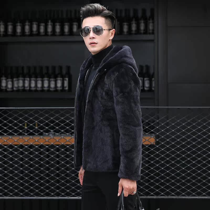 2022 New Short GREY EVEN CAP IMPORTED WHOLE MINK LEATHER BIG COAT MAN REAL WATER MINK VELVET SEININ FUR COAT GRASS JACKET