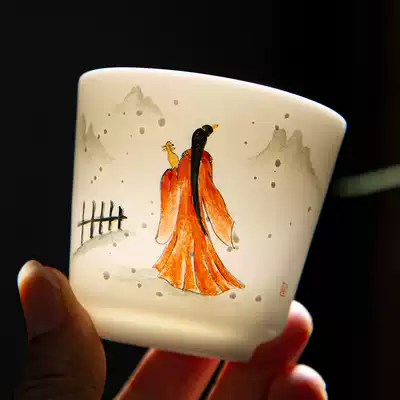 Master cup pure hand-painted teacup Dehua white porcelain tea cup Sheep fat jade porcelain tea set Beauty cup Household gifts