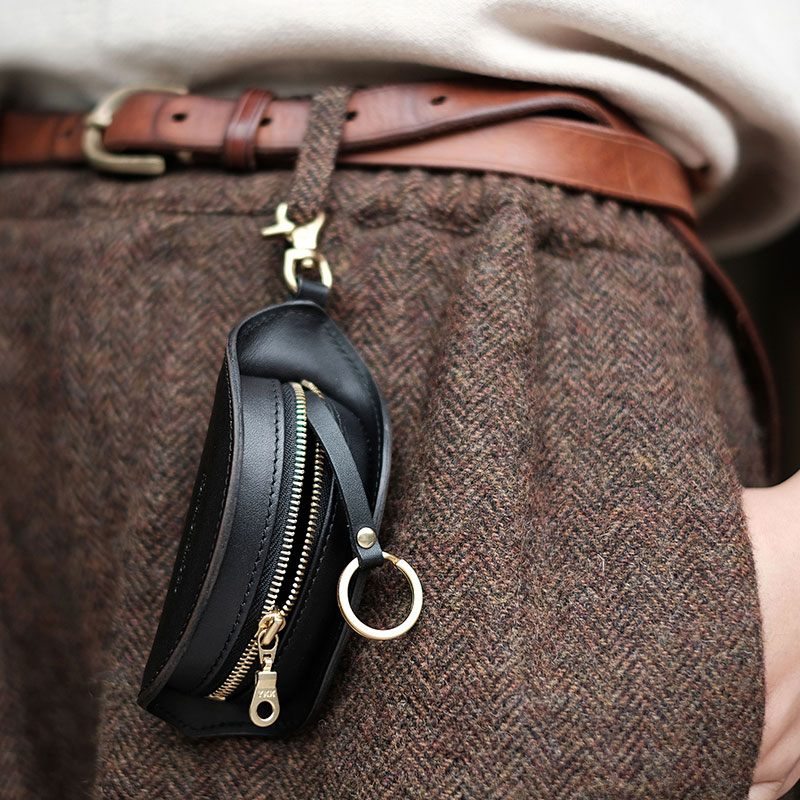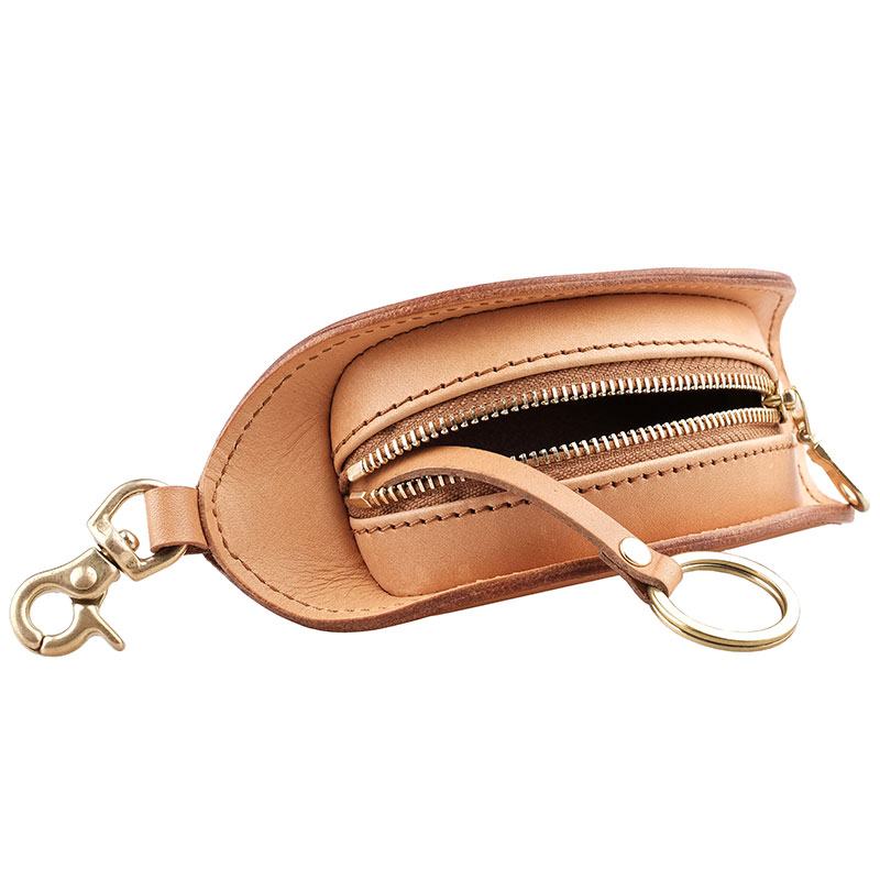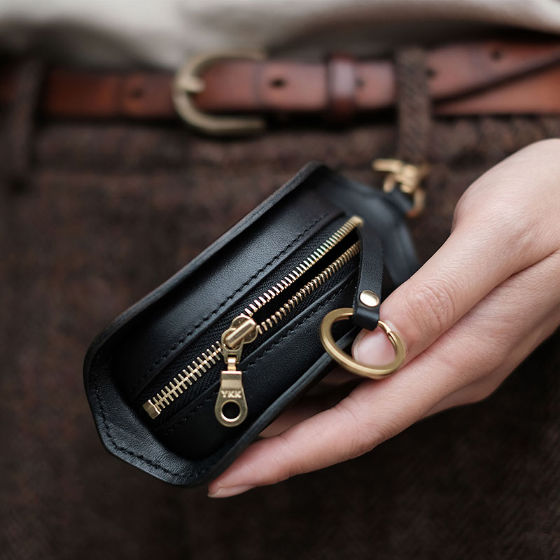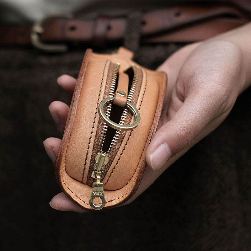 KONGLONGMOGU full leather hand-made vegetable tanned cowhide mini portable Japanese leather small zipper key case