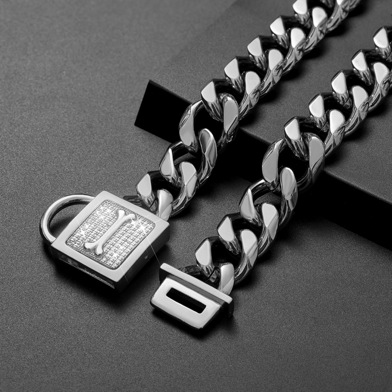 Pet Gold Dog Chain Plus Coarse stainless steel Item ring Anti-biting neck ring traction rope Neck Sleeves Large Dog Castro Bully Bully