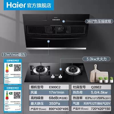 Haier E900C2 range hood gas stove package household combination side suction range hood stove set