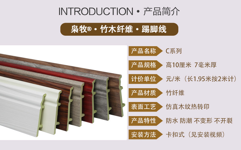 10 cm high 7 mm thick eco-friendly bamboo fiber PVC skirting footrest wall angular line ground stick self-adhesive waterproof and moisture-proof