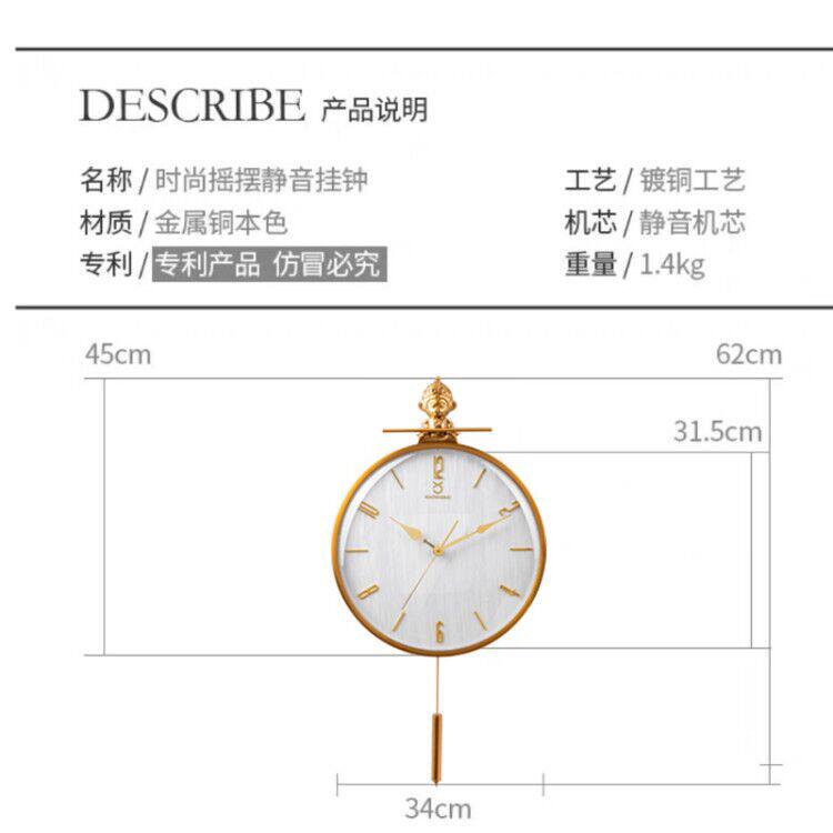New Chinese qitian great Holy hanging bell Living room Home Modern minimalist decoration mute and watch light extravagant and luxurious swinging hanging table
